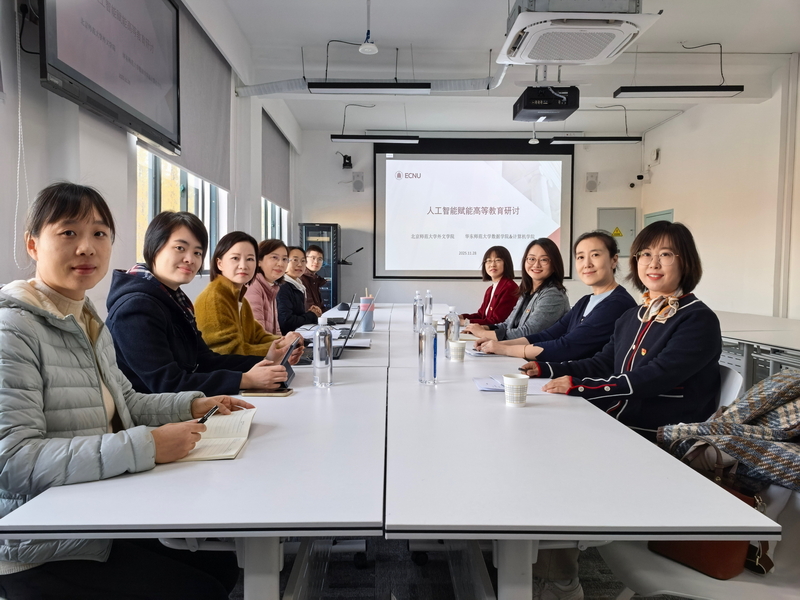为深入探索人工智能时代大学外语学科的高质量发展路径,2025年11月28日,外文学院公外党支部师曼、龙宇、孙晓燕和邵名莉一行四人,赴上海与华东师范大学数据科学与工程学院第二党支部和外语学院大学英语教学部教工党支部开展联学共建活动,并进行相关专题调研。此次活动聚焦AI技术在外语教学中的深度融合与应用实践,旨在借鉴兄弟院校先进经验,推动我校大学外语教育教学改革与创新发展。