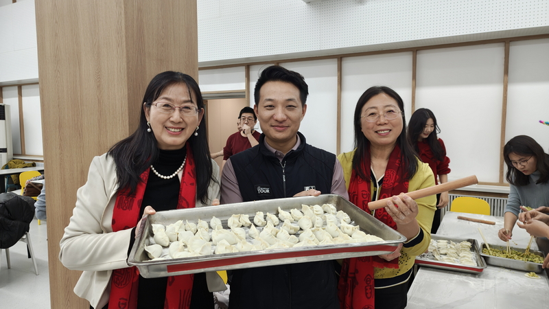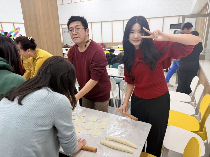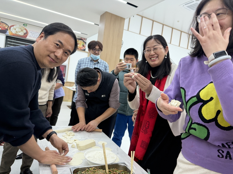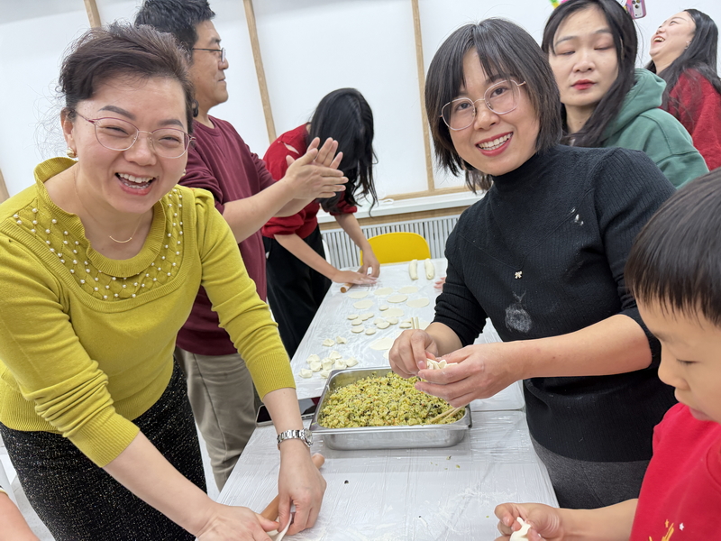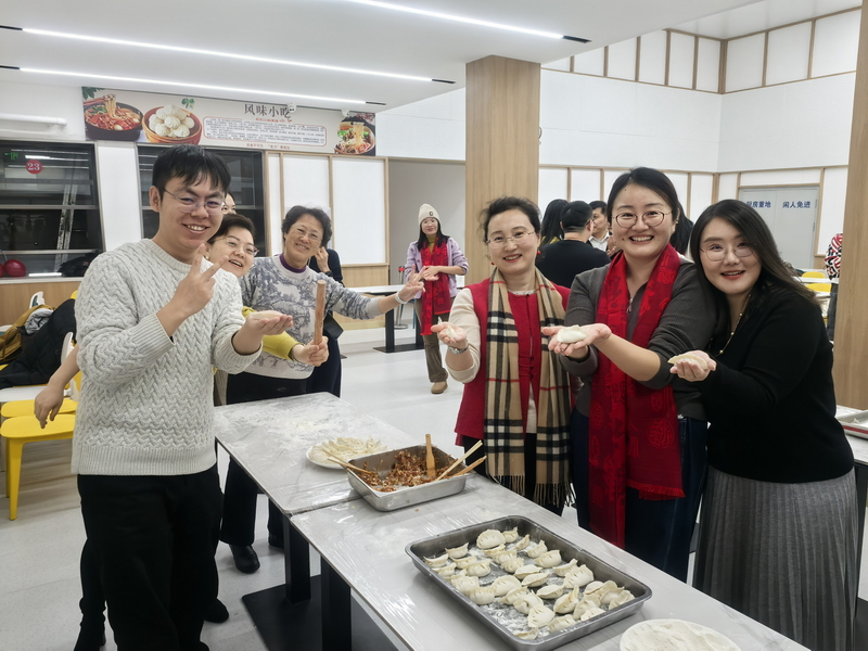 会后,教师们共同参与包饺子活动,擀面杖与面团的碰撞声中,满是团圆的温馨。
